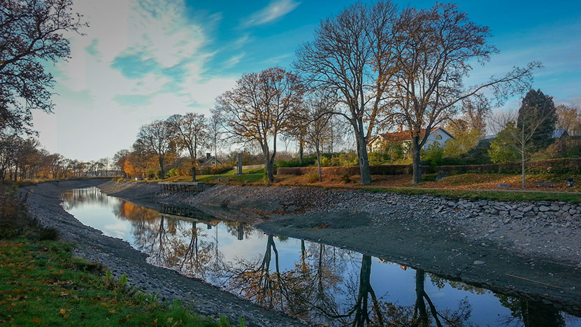 När Göta kanal byggdes under åren 1810-1832 planterades 16 000 träd längs den 19 mil nya vattenvägen. Syftet var främst att träden skulle stabilisera kanalbankarna, särskilt längs de närmare nio mil som grävts för hand. Att träden förskönar miljön var inte lika viktigt, men så har det blivit. Och aldrig är  kanalen så vacker som under höstarna med lönnar som flammar i gult och rött och ekar i bronsfärgad lövskrud.