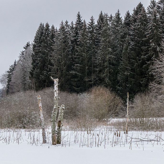 Vägarna ner var ett äventyr och på vissa sträckor av vägen önskade jag att jag hade haft en släde istället för bil. Det svaga vinterljuset gav en extra dimension åt gammelskogens ödekaraktär där livet går på sparlåga i kölden och några mesar var det enda som hördes i den för övrigt vintertysta skogen.