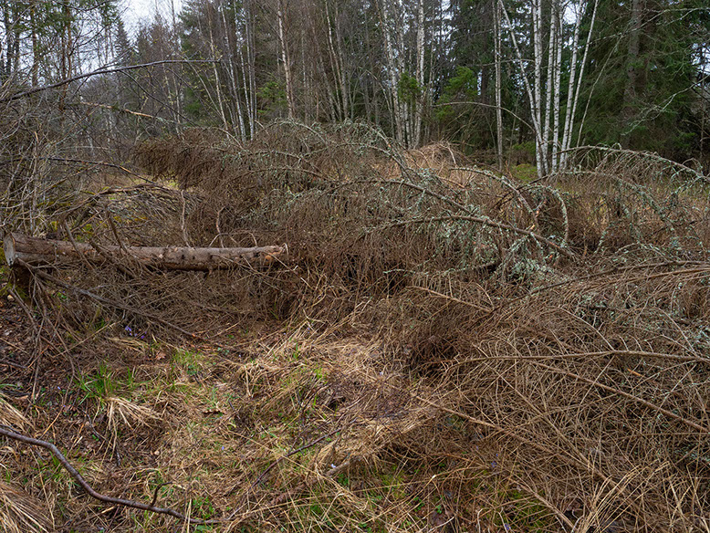Men tyvärr så kan man väl även konstatera att reservatsförvaltaren okänsligt och i sin hunger efter död ved skapat ett formligen plockepinn med omkullvräkta träd över alla sipporna i den lilla gläntan. Det är inte alltid som naturvård är förenligt med höga upplevelsevärden.
