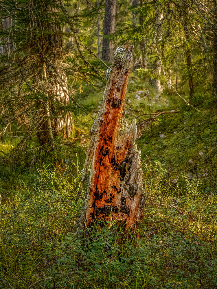Det finns fortfarande oskyddade skogar dit skogsskövlingen inte nått och jag har några sådan ställen jag ofta åker till. I en av dessa skogar står en grov avbränd och nästan meterhög stubbe. Den är ett fortfarande existerande minnesmärke efter den våldsamma skogseld som sommaren 1822 drog fram genom flera socknar. Den har alltså stått här i nästan 200år och ser fortfarande nybränd ut. När skogsskövlarna drar förbi nästa gång är den borta för alltid...