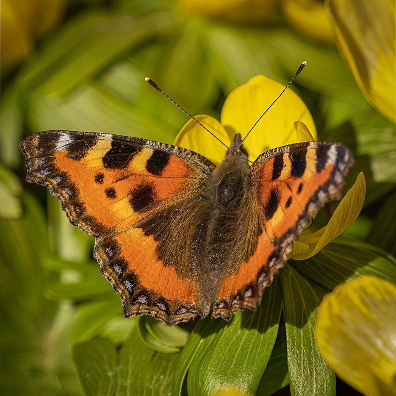 Ett bekant läte hörs på avstånd men växer till sig i styrka och traktens tran par flyger precis övar mig och trumpetar till hälsning samtidigt som jag ger dom en vinkande välkomst hälsning. Nässelfjärilarna fladdrar oberört över vintergäcken och våren tar stora kliv framåt.